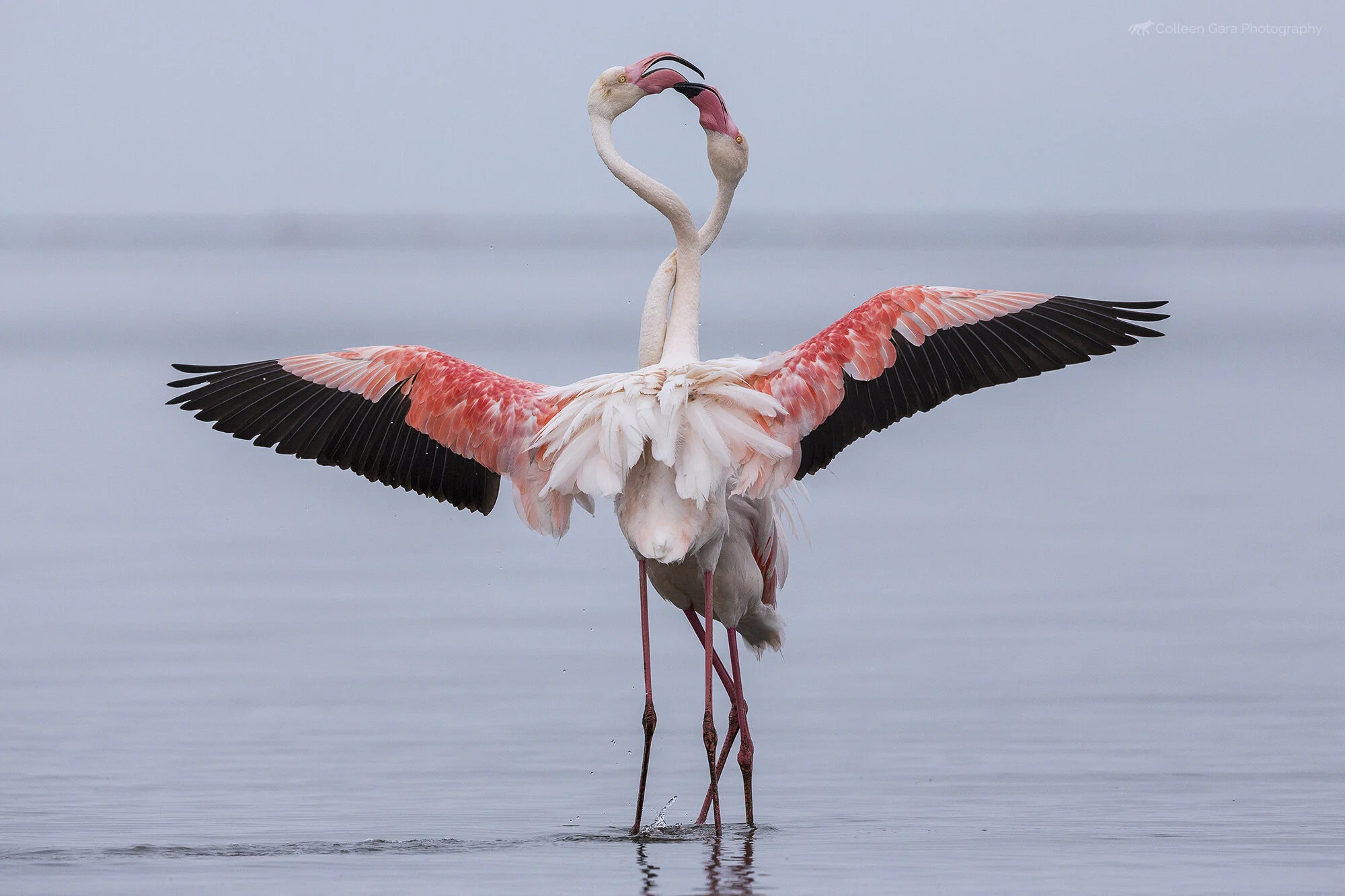 Face Off - Greater flamingos, Namibia, Africa.